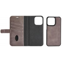 Grått plånboksfodral tillverkat i äkta läder och med ett avtagbart skal till din telefon - så att du får två fodral för...