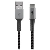 Goobay USB-C till USB 2.0 ladd- och synkroniseringskabel i extra tåligt textil material. För exempelvis laddning av mobila...
