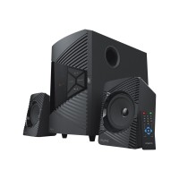 Högtalarsystem med två högtalare och subwoofer som passar perfekt för att ge ett kraftfullt trådlöst ljud till exempelvis...