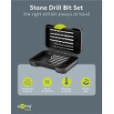 Detta borrset ger dig precision och pålitlighet vid alla projekt i sten och murverk. Med centreringsspetsen kan du borra raka och exakta hål utan att borret slinter, vilket gör arbetet både enklare och mer professionellt.