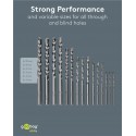 Borrarna har rund skaft som enkelt passar i borrmaskin eller slagborrmaskin och finns i flera diametrar från 3 mm upp till 10 mm. Med detta borrset har du ett mångsidigt och pålitligt verktyg som underlättar både små och stora projekt.