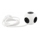 Snyggt och smart klotformat grenuttag som har fyra vanliga jordade, petskyddade kontakter och dessutom två USB-kontakter för smidig laddning av exempelvis mobiltelefoner och surfplattor.