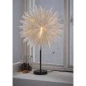 Mycket elegant vit pappersstjärna gjord i tre lager vikt papper placerad på en stilren svart fot och med en E14-sockel som låter dig själv välja vilken lampa du vill ha i den. Stjärnan sprider ett varmt och stämningsfullt ljus i hemmet och med sin lekfulla form skapar den den perfekta julkänslan, oavsett om du placerar den i fönstret eller på ett sidobord.