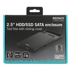 DELTACO Externt kabinett med skjutbar lucka, 2,5" SATA HDD/SSD, USB 3.1 Gen 1, SATA III, svart