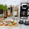 Bryggaren rymmer upp till 12 koppar, perfekt för både familjen och gästerna. Med anti-dropp-funktion kan du hälla upp en kopp även innan bryggningen är klar, utan spill. Den graderade kannan och vattentanken gör doseringen enkel, och med automatisk värmehållning förblir kaffet perfekt tempererat. När bryggaren inte längre används stänger den av sig själv - tryggt och energismart.