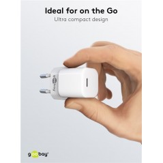 Kompakt GaN Nano Goobay snabbladdande strömadapter med USB-C PD 30 watt (Power Delivery). Max-Ampere på 3A gör att den passar sig för såväl alla surfplattor som mobiltelefoner. Upp till 4x snabbare laddning. Ladda hela 50% på 30 minuter! Kommer i vitt utförande.