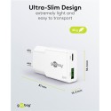 Goobays snabbladdande strömadapter är den perfekta lösningen för dig som alltid är på språng. Med en ultraslimmad design som enkelt får plats i varje ficka, väska eller handbagage är den särskilt utformad för resenären. Trots sitt kompakta format levererar den upp till 20 W och klarar enkelt laddningen av smartphones, hörlurar, surfplattor och powerbanks – snabbt och effektivt.