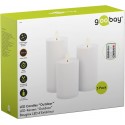 Wentronic 64786 är ett set med tre batteridrivna LED-ljus för utomhusbruk. Tillverkade av äkta stearin och utrustade med en realistisk fladdrande effekt, sprider de ett varmt vitt ljus (3000 K). Med IP44-klassificering tål de både regn och fukt. Fjärrkontroll med timerfunktion ingår för enkel styrning.