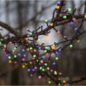 Mycket lång och superfin ljusslinga för utomhusbruk med hela 700 små färgade LED-lampor som ser ut som runda bär för ett riktigt stämningsfullt ljus på mörka kvällar! Kan användas med fast lysande sken eller i flera olika varianter av blinkande ljus. Har också timer för användning 6 timmar per dygn.