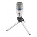 Liten USB-mikrofon i smidig och portabel storlek. Ansluts till din dator med en USB-kabel. Med inbyggd ljudkrets och puffskydd passar den jättebra för t.ex. podcasts. 3,5mm-ljudutgång ger dig möjlighet för medhörning (ej i realtid).