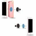 Magnetisk telefonhållare för bilen med fritt roterande huvud. Fyra starka magneter vilar under den mjuka silikon-gel kudden. Magneterna håller din telefon på plats även vid skakiga åkturer. Hållaren fäster vid de flesta ytor med 3M stickern på undersidan.