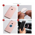Telefonhållare som fästs i bilen med självhäftande 3M-sticker med 360 graders rotation! Håller din telefon säkert på plats med fyra starka magneter. Magnet att fästa på mobil eller i mobilskal medföljer!