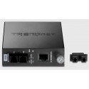 TRENDnet TFC‑110MSC är en mediaomvandlare som kopplar samman traditionellt kopparbaserat Ethernet med fiberoptisk kabel. Den gör det möjligt att föra nätverkstrafik mellan en standard RJ-45-port och en fiberport med SC-kontakt. Detta är användbart i nätverksmiljöer där signaler behöver skickas längre än vad vanlig nätverkskabel klarar, eller där fiber redan är installerat men enheter behöver kopplas in med Ethernet.