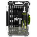 Goobay skruv- och bitsset kombinerar hög precision, ergonomi och smart design i ett kompakt och robust format. Med tydligt märkta S2-stålbits, spärrfunktion och en stapelbar förvaringslåda är det det perfekta setet för både finmekanik och mobila reparationer.