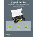 Goobay skruvmejsel- och bitsset med 43 delar är den perfekta följeslagaren för allt från vardagsfix till avancerad montering. Med en ergonomisk, magnetisk bithållare, genomtänkt design och en slitstark förvaringsbox är varje detalj skapad för att ge dig en smidigare och mer effektiv arbetsupplevelse. Alla bitar är standardiserade och passar även vanliga batteridrivna skruvdragare, vilket gör setet extra mångsidigt.